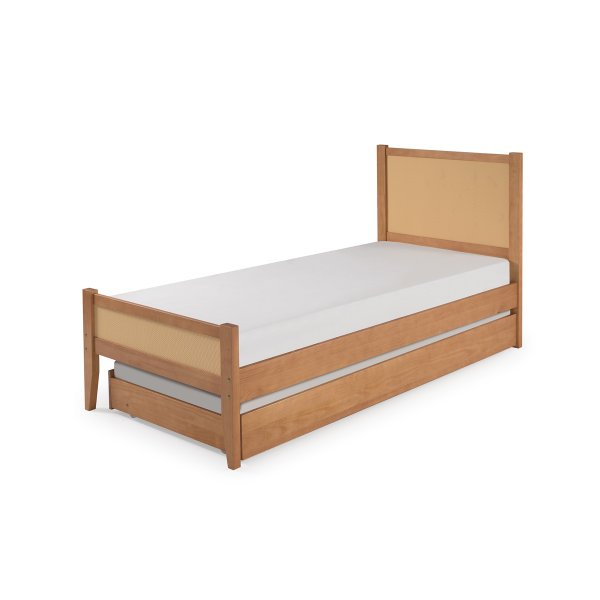 Cama bicama Slim com acabamento em palhinha – madeira maciça, cor caramelo