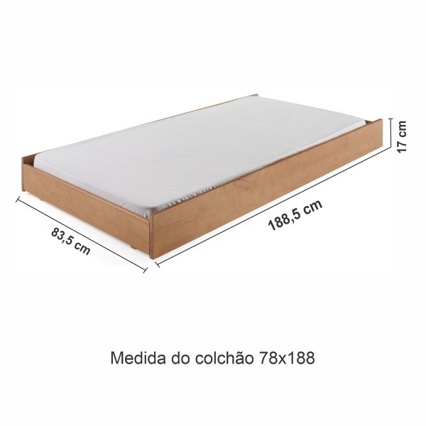 Seu design baixo permite que ela seja guardada sob camas compatíveis ou utilizada separadamente como uma cama adicional em quartos infantis, juvenis, de hóspedes ou ambientes compactos. A estrutura firme proporciona descanso seguro e confortável, mesmo em uso frequente.