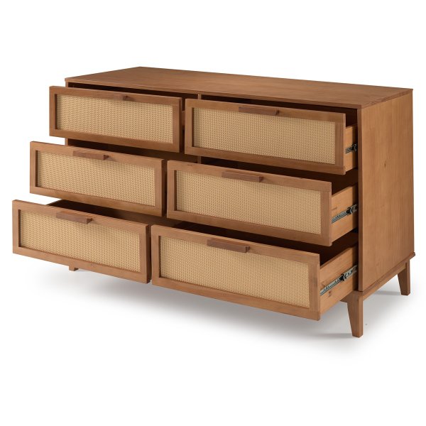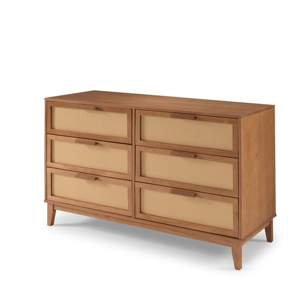 Cômoda 6 gavetas Palhinha Slim – madeira maciça, acabamento caramelo