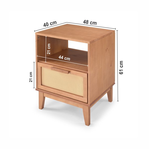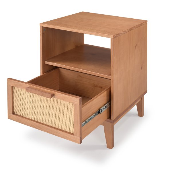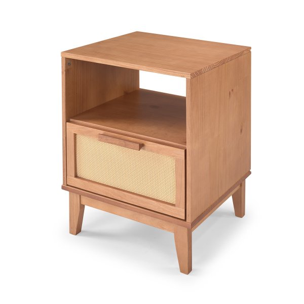 Mesa de Cabeceira Slim com Gaveta em Palhinha – Madeira Maciça Caramelo