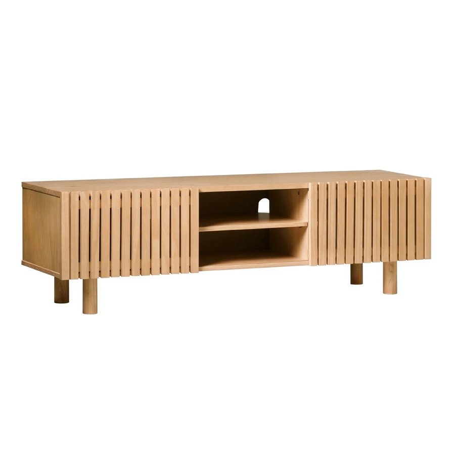 Rack TV baixo / sapateira 2 portas de Correr Ripada - Madeira Maciça